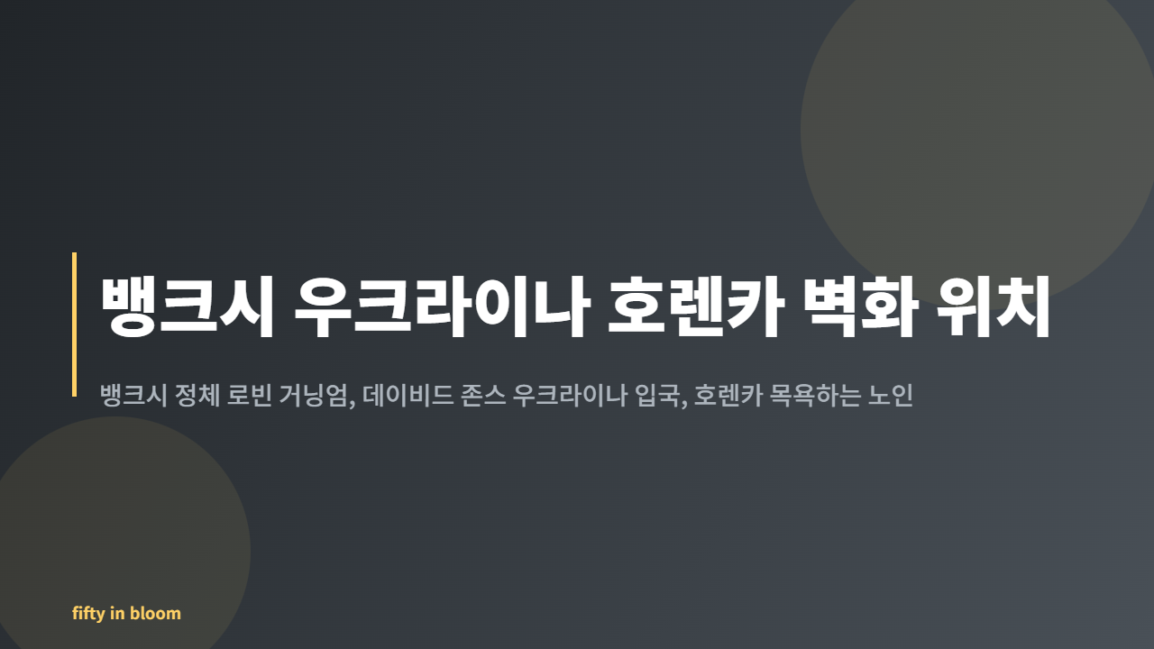 2026년 3월 13일 로이터 통신이 공개한 탐사 보도로 뱅크시 우크라이나 호렌카 벽화가 다시 한번 주목받고 있습니다. 특히 뱅크시 정체 로빈 거닝엄과 생년월일이 일치하는 데이비드 존스 우크라이나 입국 기록이 발견되면서, 2022년 11월 호렌카 마을에 그려진 목욕하는 노인 벽화의 제작 정황에 새로운 의혹이 제기되고 있습니다.뱅크시 호렌카 벽화의 정확한 위치와 현황러시아의 우크라이나 침공으로 파괴된 키이우 외곽 호렌카(Horenka) 마을에는 뱅크시의 대표작 중 하나인 '욕조에서 목욕하는 수염 난 노인(The Bather)' 벽화가 그려져 있습니다. 이 작품은 러시아 폭격으로 완전히 파괴된 아파트 1층 잔해의 벽면에 제작되었으며, 폐허 속에서도 일상을 잃지 않으려는 우크라이나인들의 의지를 상징합니다.현재..